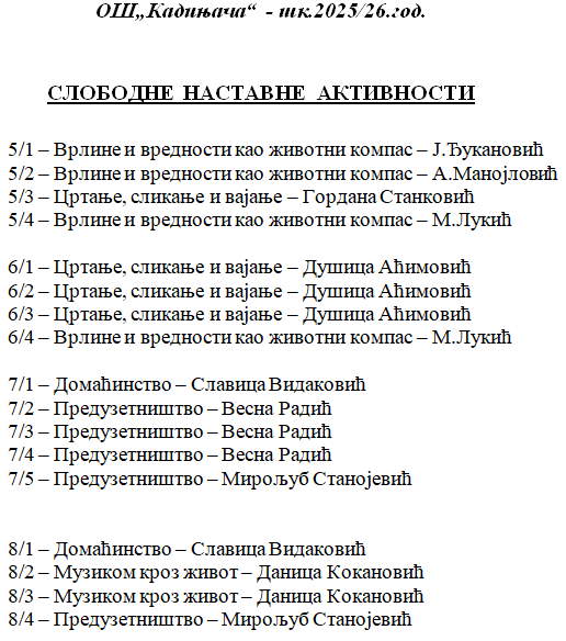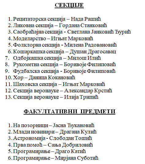 Секције,факултативни предмети и слободне наставне активности