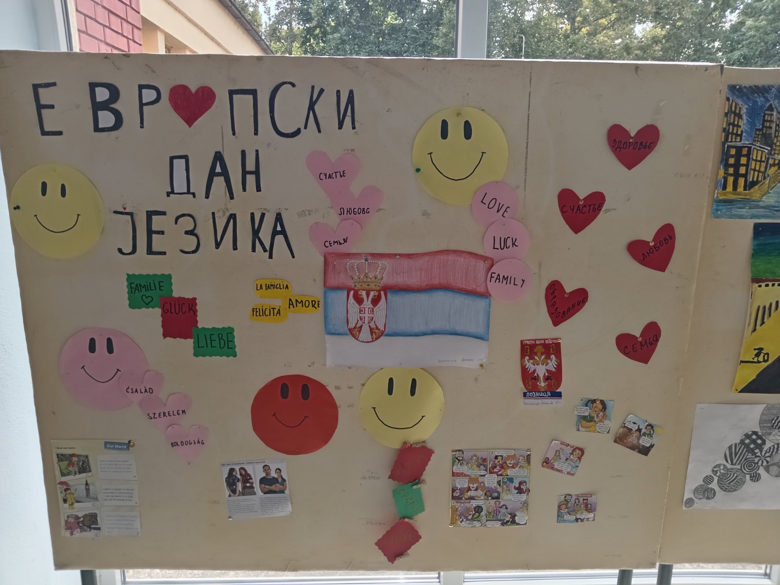 Ученици су у оквиру обележавања Европског дана језика одржали час у школској библиотеци. Том приликом изговарали су стихове на европским језицима: српском, руском, немачком, италијанском и мађарском. Упоредо су израдили пано са најлепшим речима на претходно набројаним језицима (љубав, срећа, породица, здравље, образовање).